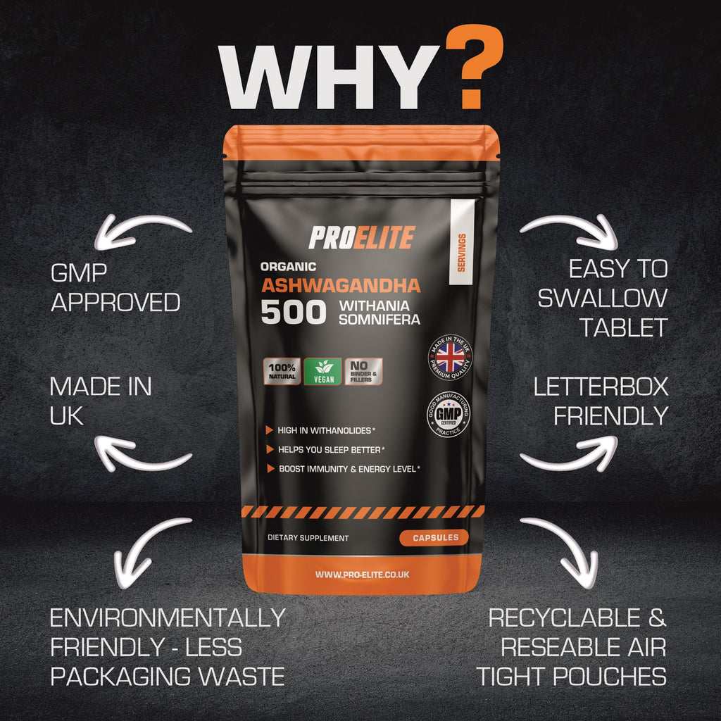 PROELITE Organic Ashwagandha Capsules contains a number of important nutritional components including fatty acids, amino acids and a variety of sugars, and has a reputation for boosting the body's supply of antioxidants, whilst maintaining a healthy immune system.