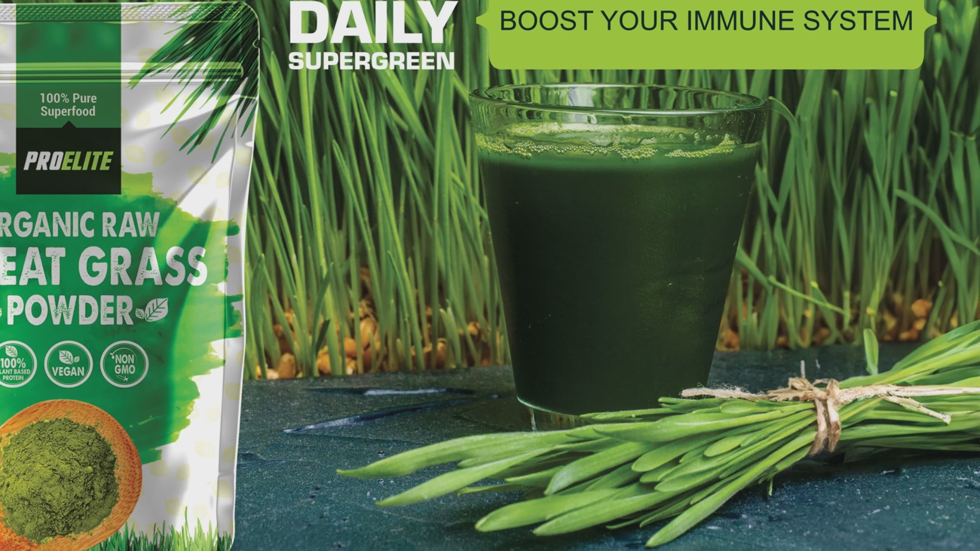PROELITE Wheatgrass Powder is made from the young grass stage of the wheat plant, harvested shortly after sprouting. The tender green shoots are carefully dried and milled into a fine powder, commonly used in wholefood and plant-based diets.